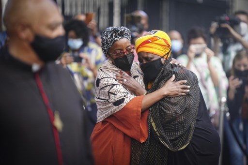 Dochters Naomi Nontombi Tutu en Theresa Thandeka Tutu nemen afscheid met veel emoties. epa-efe