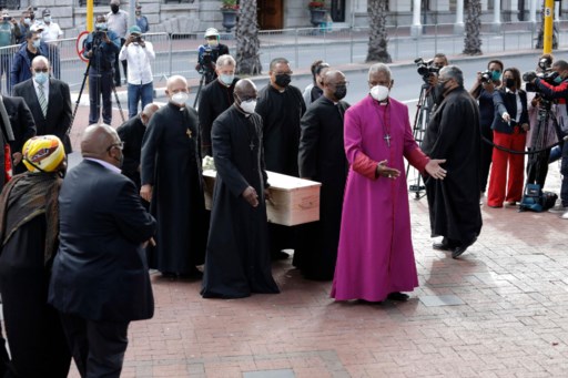 Het lichaam van Tutu wordt naar de kathedraal gebracht. afp