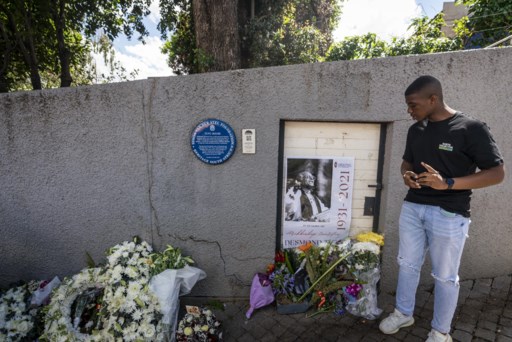 Ook aan de woning van Tutu werden bloemen en herdenkingsportretten neergelegd. ap