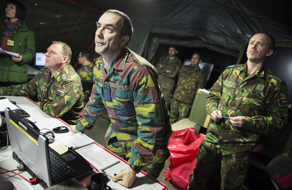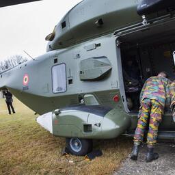 - 1 / 2De EUBG kan ook luchtsteun inzetten, maar voorlopig niet deze gloednieuwe NH90-heli, die gisteren in Elsenborn werd geshowd. © Dieter Telemans